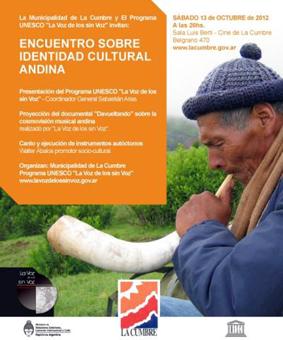 13.10.2012 | Hoy Sábado 13 de Octubre la Municipalidad de La Cumbre y el Programa UNESCO " La voz de los sin Voz" los invitan a la proyección del documental "DAVUELTEANDO" sobre la cosmovisión musical andina. El mismo tendrá lugar en Sala Luis Berti de nuestra localidad a las 20:00 hs.